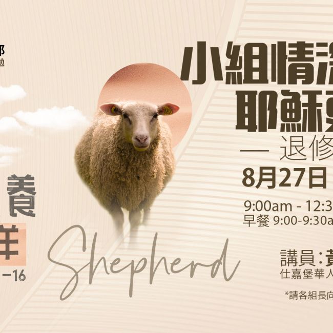 聖潔器皿 2025關顧週年退修會: 聖潔器皿 日期:10 月4 日(週六) 時間:早上9:30 地點:在G200 舉行 講員: 傅再恩牧師 報名:請用二維碼按此填寫表格。詳情請参閱海報或聯絡李嘉偉長老(416-505- 9079) 退修會,關顧 仕宣 SCAC 2025-08-14
