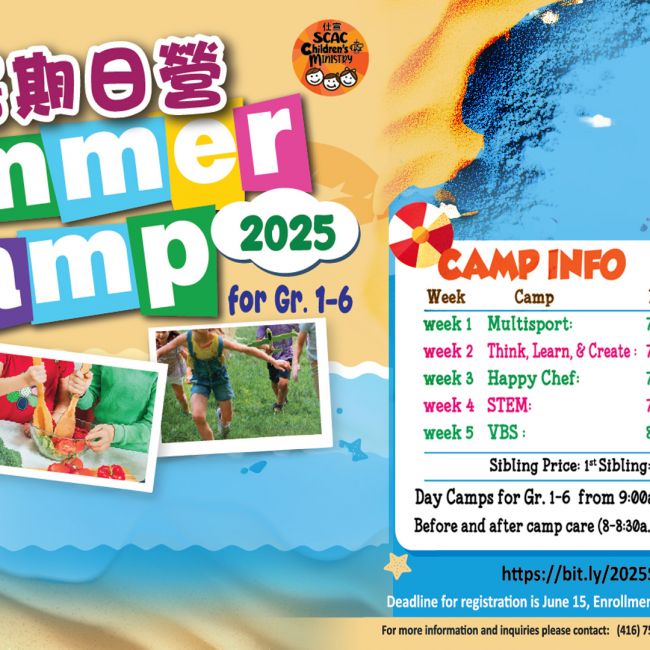 日期:多元化日營 (7月7日-8月1日)、兒童聖經日營VBS (8月11-15日)