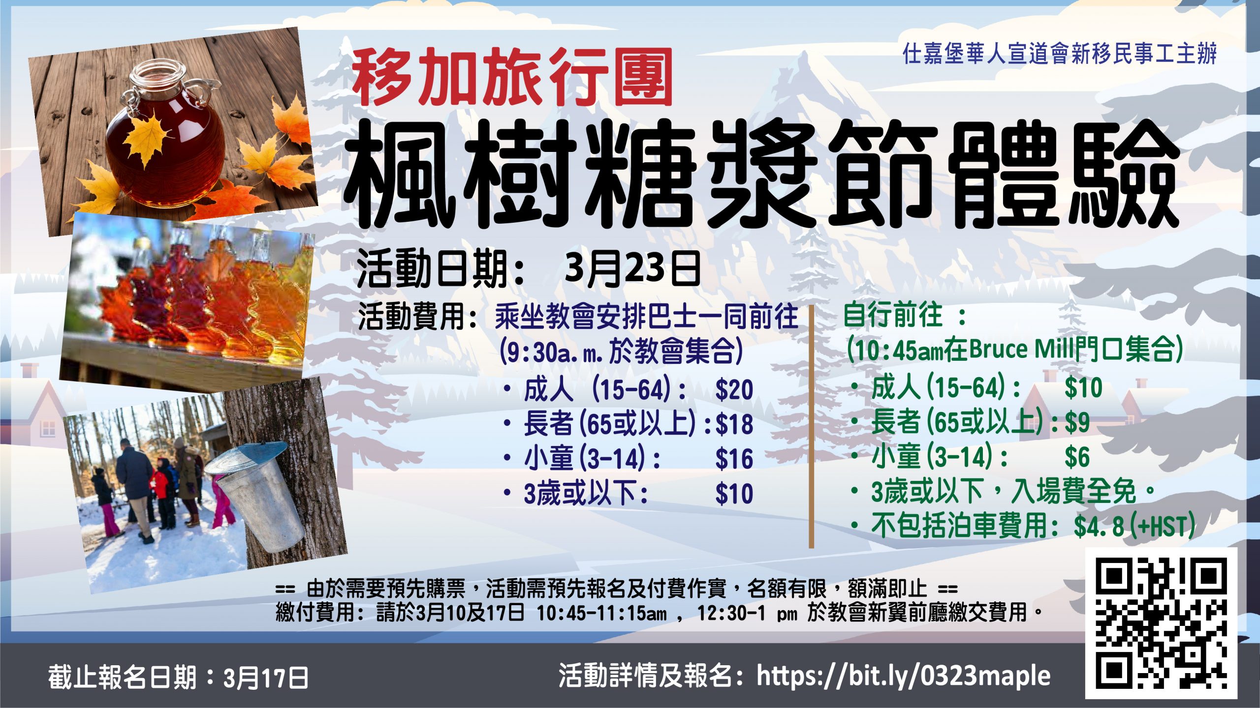 活動費用:乘坐教會安排巴士一同前往(9:30a.m.於教會集合)