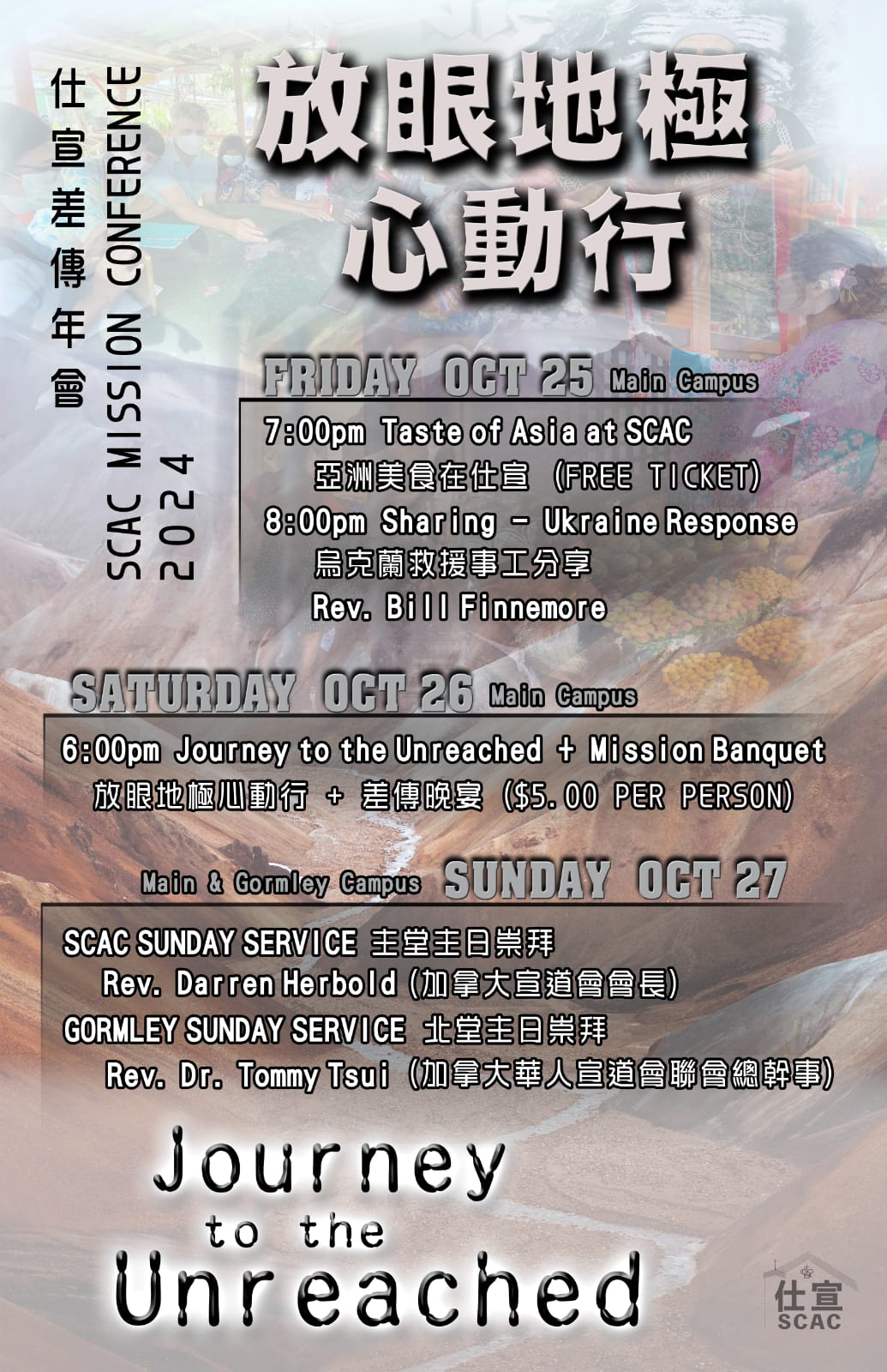 2024-10-25 2024仕宣差傳年會-放眼地極心動行 2024仕宣差傳年會-放眼地極心動行 2024-10-25 @ 7:00 下午 - 2024-10-27 @ 9:00 下午 2024仕宣差傳年會-放眼地極心動行 2024仕宣差傳年會 主題: 放眼地極心動行 日期:10月25-27日舉行 內容:邀得Rev. Bill Fi […]