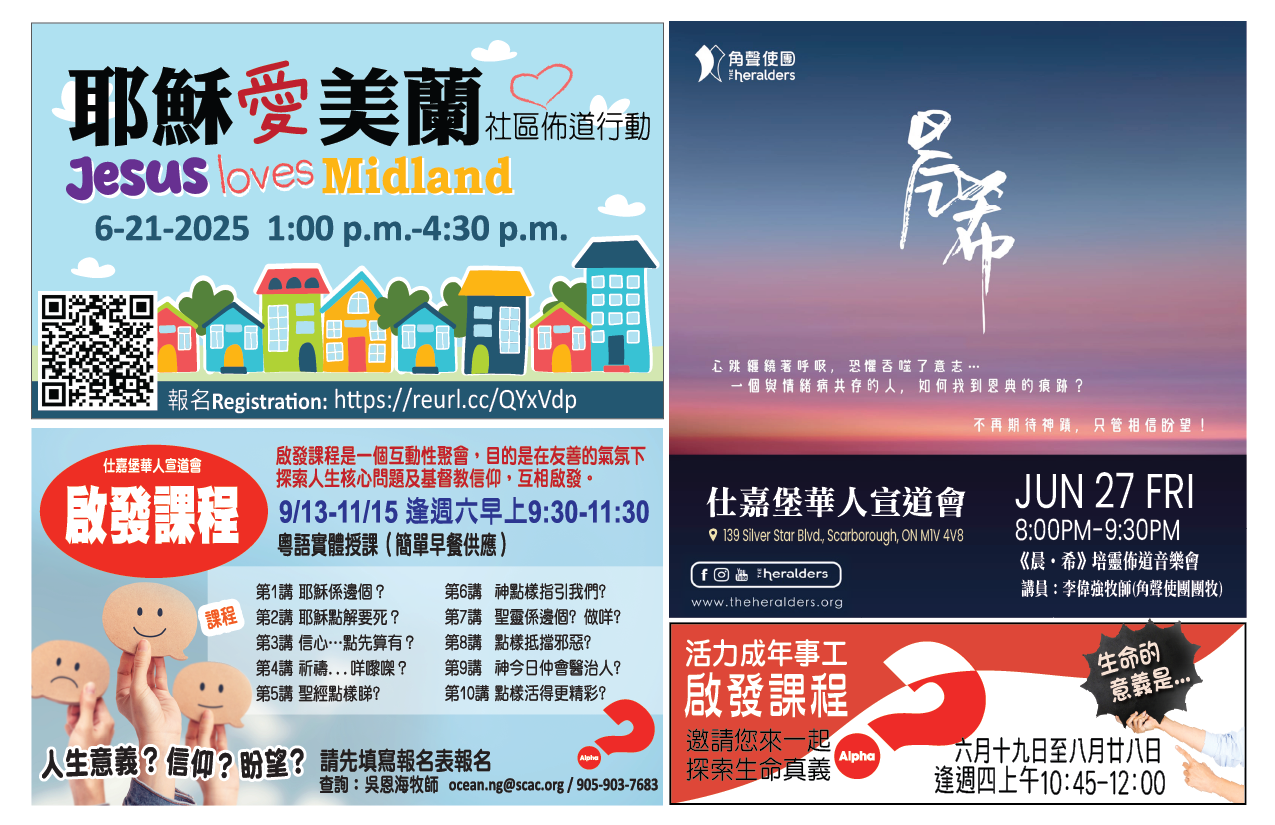 7:00 pm - 9:00 pm 音樂分享晚會 2025-07-19 @ 7:00 下午 - 9:00 下午 音樂分享晚會 聖樂部舉辦綜合音樂分享晚會,內容包括手鈴隊、小組合唱、詩班、以及各樣樂器演奏,誠意邀請大家出席。出席者還有機會 […]