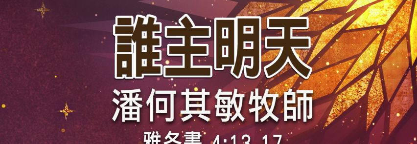 誰主明天 潘何其敏牧師 2024-01-07 粵語講道 雅各書 4:13-17 不要倚靠無定的明天(13-14節上) 不要倚靠短暫的今生(14節下) 要倚靠掌管明天的主 Share: Post navigation ← 主啊!願祢快來! 從逆境中得益 →