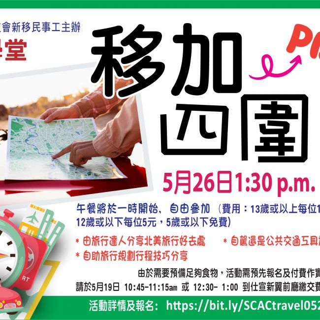 新移民事工活動: 移加學堂「移加砵砵車」講座