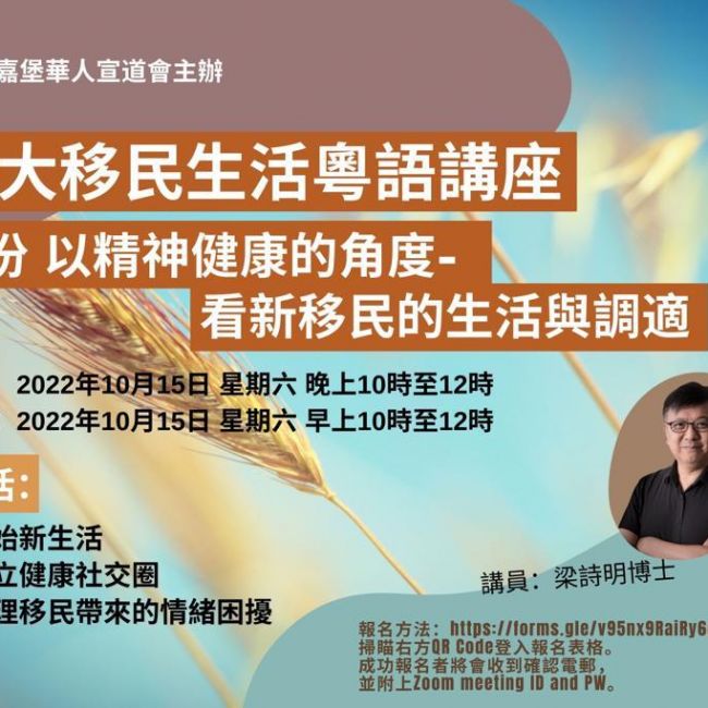加拿大移民網上粵語講座:以精神健康的角度 – 看新移民的生活質調適