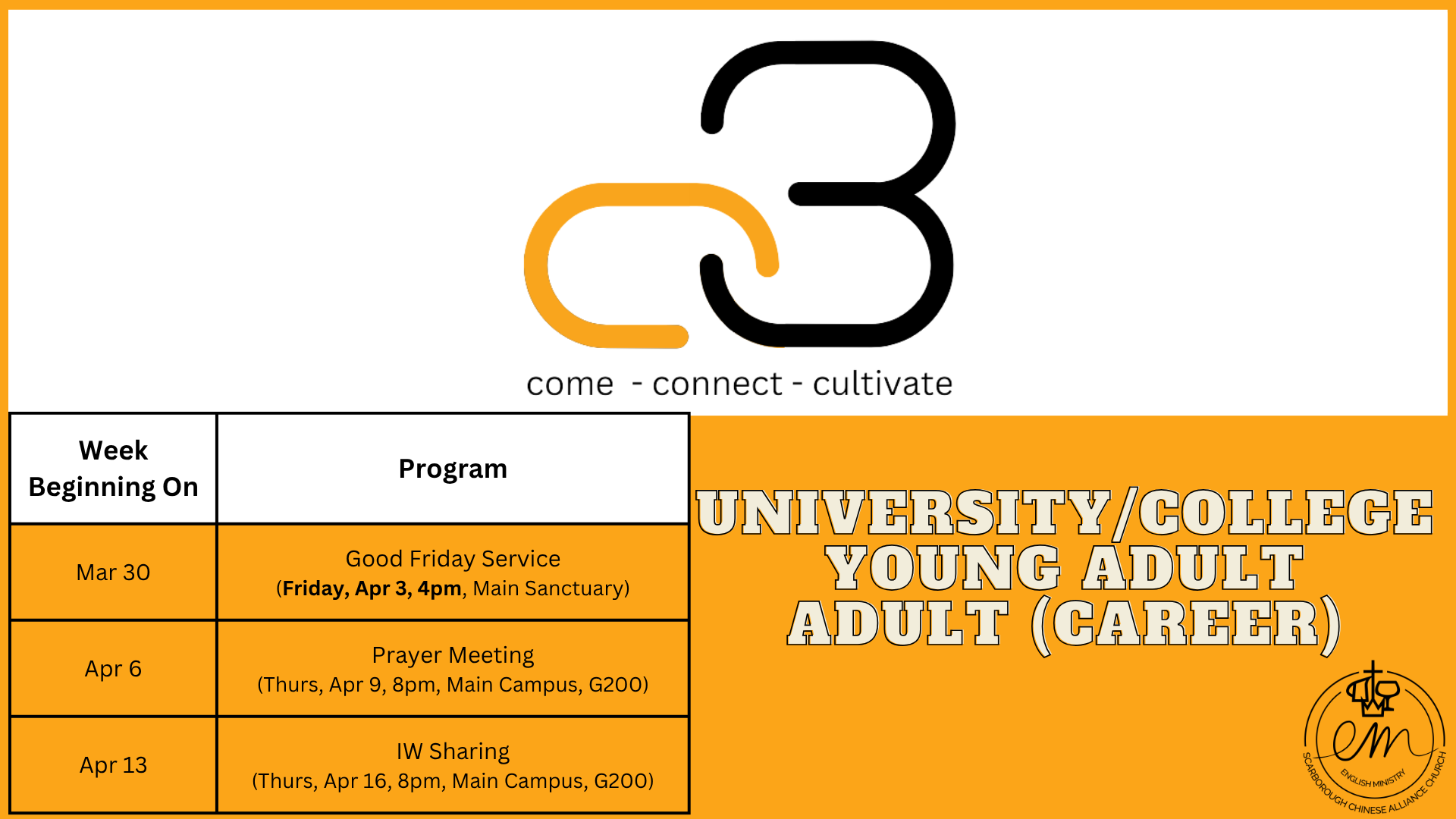 FRIDAYS @8pm, MAIN CAMPUS