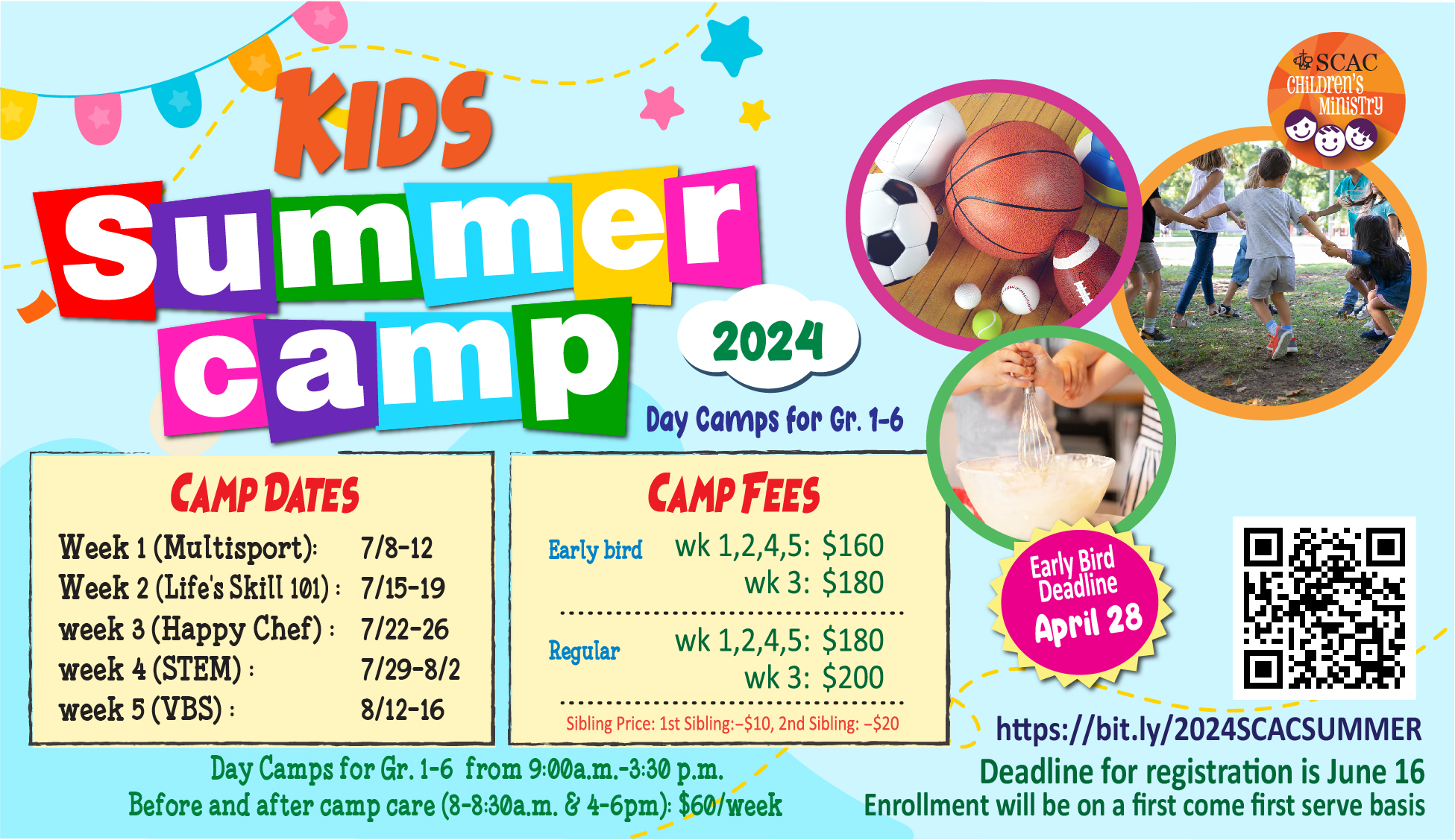 日期:多元化日營 (7月8日-8月2日)、兒童聖經日營VBS (8月12-16日)