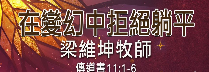在變幻中拒絕躺平 梁維坤牧師 2024-07-14 粵語講道 傳道書11:1-6 要有投資才有指望有收穫 要冒險行動不要錯失時機 要勤力工作將結果留給神 Share: Post navigation ← 使我作祢和平之子 建立一顆僕人的心與王見面 →