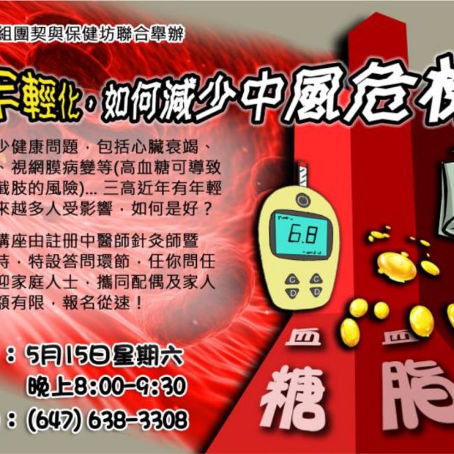 國語堂外展講座: 與保健坊聯合舉辦「三高年輕化- 如何減少中風危機」