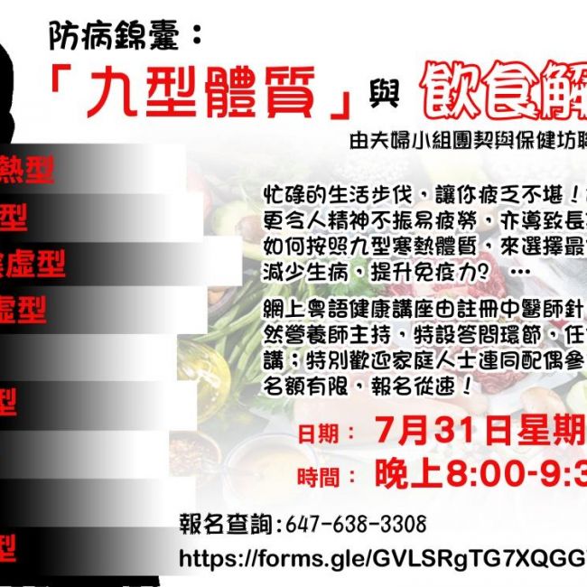 夫婦小組團契與保健坊聯合舉辦:防病錦囊之「九型體質」與飲食解碼