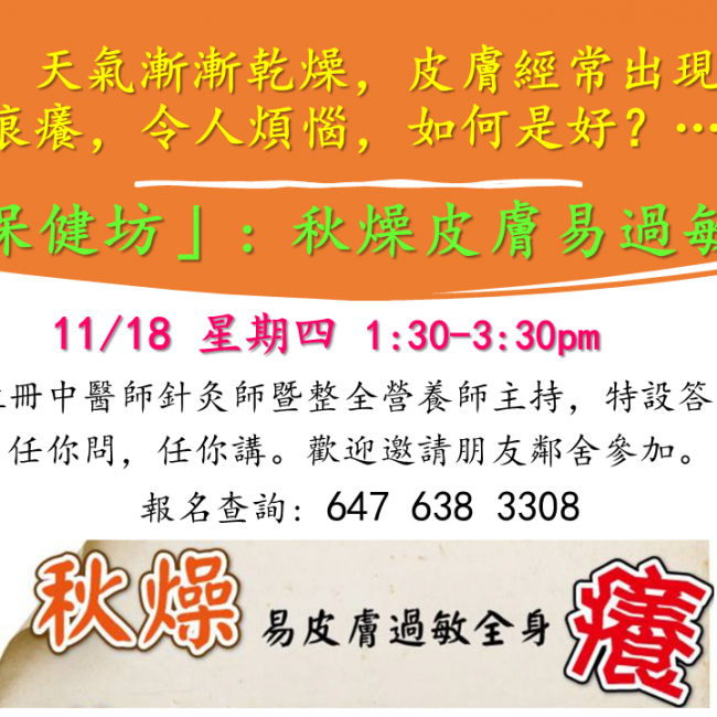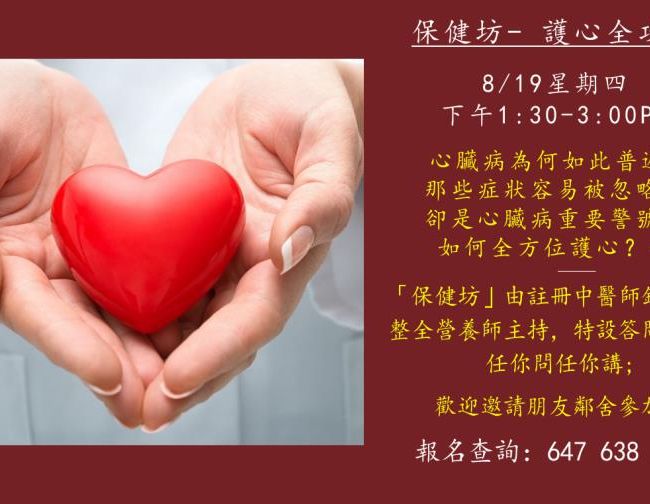 講座由註冊中醫針灸師及全營養師主持,特設答問時間,任你問,任你講。歡迎邀請朋友鄰舍參加。