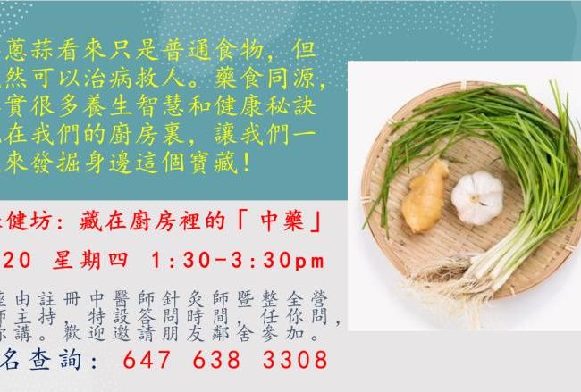 保健坊: 藏在廚房裡的「中藥」。講座由註冊中醫師主持。